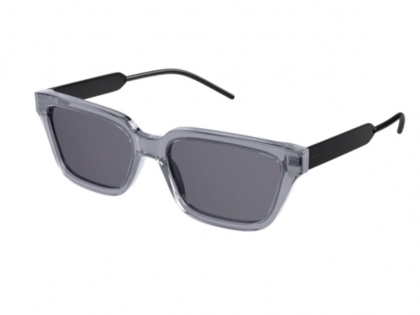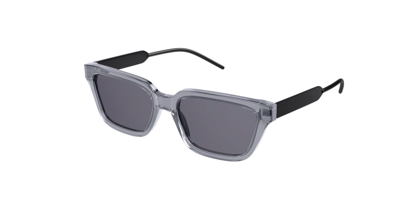 Τα νέα γυαλιά ηλίου GUCCI GG 0975S 001 55 έχουν κοκκάλινη μετώπη σε μοντέρνο παραλληλόγραμμο σχήμα και διάφανο/γκρι χρώμα σε συνδυασμό με μαύρους μεταλλικούς βραχίονες με το λογότυπο του οίκου. Οι φακοί είναι οργανικοί, άθραυστοι σε χρώμα φιμέ. Ταιριάζουν ιδανικά σε μεσαία και μεγαλύτερα πρόσωπα και χαρίζουν μοναδικό στυλ.