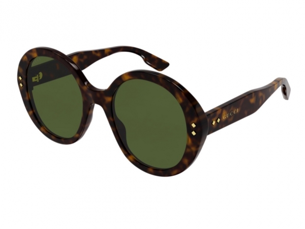 Τα γυναικεία γυαλιά ηλίου Gucci GG 1081S 003 54 έχουν κοκκάλινο σκελετό σε oversized στρογγυλό σχήμα και καφέ ταρταρούγα χρώμα. Οι φακοί είναι οργανικοί και άθραυστοι σε χρώμα πράσινο. Ταιριάζουν ιδανικά σε μεσαία και μεγαλύτερα πρόσωπα και χαρίζουν ρετρό στυλ. Δωρεάν αποστολή και αντικαταβολή.